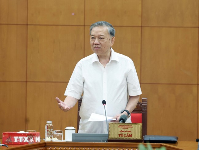 | Tổng Bí thư Tô Lâm phát biểu. Ảnh: Thống Nhất/TTXVN |