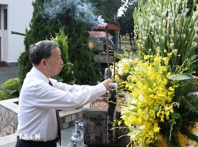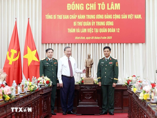 Trước đó, Tổng Bí thư Tô Lâm và Đoàn công tác của Trung ương đã đến dâng hương tại Đài tưởng niệm các Anh hùng Liệt sĩ của Quân đoàn 12; tham quan Bảo tàng Quân đoàn 12 và ghi Sổ Vàng truyền thống; trồng cây lưu niệm trong khuôn viên Sở Chỉ huy của Quân đoàn 12./.