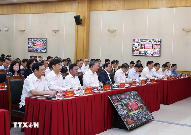 | Tổng Bí thư Tô Lâm, Trưởng Ban Chỉ đạo Trung ương và các đại biểu tham dự hội nghị. Ảnh: Thống Nhất/TTXVN |