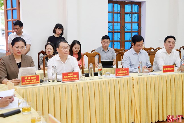 | Phó Chủ tịch Uỷ ban Trung ương MTTQ Việt Nam Hà Thị Nga và các đại biểu tại buổi làm việc. Ảnh: Báo Hà Tĩnh |
