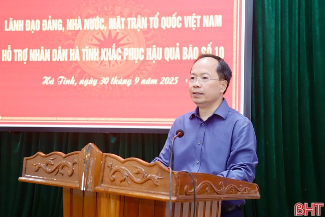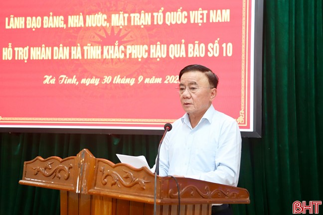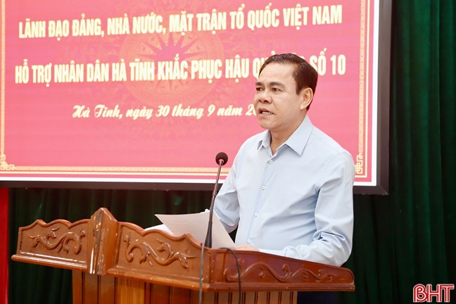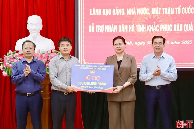 Phó Chủ tịch Ủy ban Trung ương MTTQ Việt Nam Hà Thị Nga cũng trao 500 triệu đồng của Ban vận động cứu trợ Trung ương hỗ trợ tỉnh Hà Tĩnh; các đơn vị tài trợ trao hỗ trợ tỉnh 7,7 tỷ đồng khắc phục hậu quả bão số 10.