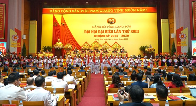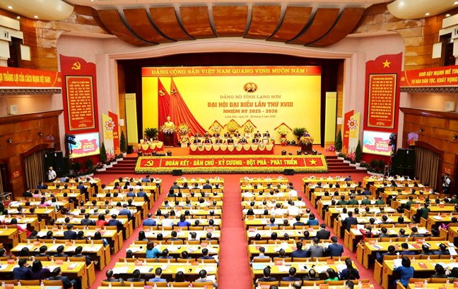 | Quang cảnh Đại hội đại biểu Đảng bộ tỉnh Lạng Sơn lần thứ XVIII, nhiệm kỳ 2025-2030. Ảnh: PV |
