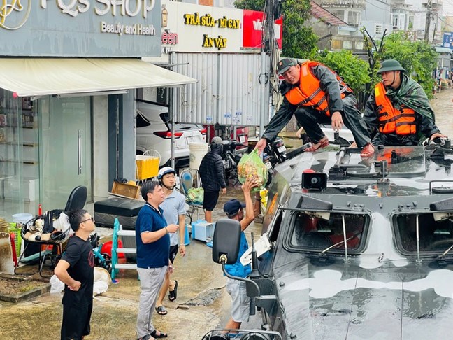 Lực lượng vũ trang tiếp tế hàng nghìn suất nhu yếu phẩm đến với người dân vùng ngập sâu