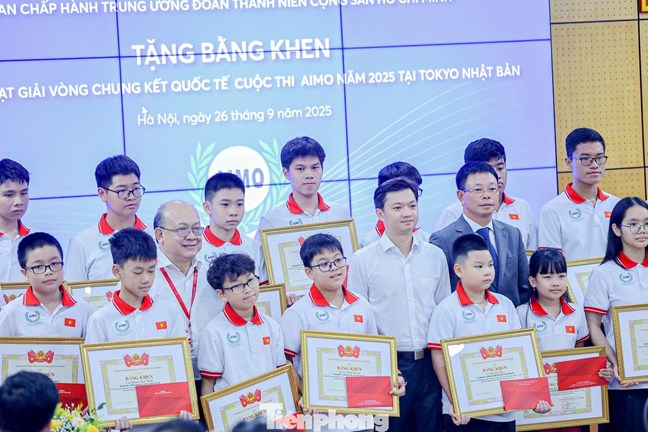 (Mặt trận) - Chiều 26/9, tại buổi họp báo phát động Đấu trường Toán học Châu Á - AIMO năm học 2025 - 2026, anh Nguyễn Minh Triết - Bí thư Trung ương Đoàn đã trao bằng khen cho các thí sinh đạt giải vòng chung kết quốc tế AIMO 2025.