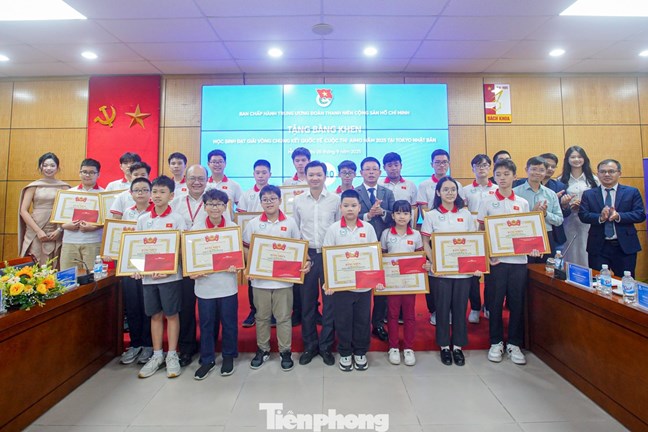 | Tại buổi phát động mùa giải mới, các bạn học sinh tham gia và giành Huy chương tại Chung kết Quốc tế AIMO 2025 đã nhận được Bằng khen của Ban chấp hành Trung ương Đoàn TNCS Hồ Chí Minh |