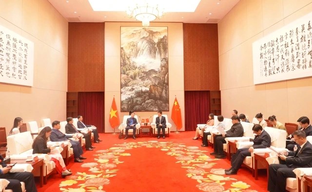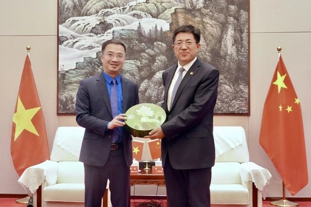 (Mặt trận) - Trong chương trình "Hành trình đỏ nghiên cứu, học tập năm 2026" tại Trung Quốc, đồng chí Nguyễn Tường Lâm, Bí thư Trung ương Đoàn, Chủ tịch Trung ương Hội Liên hiệp thanh niên Việt Nam, cùng đoàn công tác đã có buổi gặp xã giao Bí thư thứ nhất Trung ương Đoàn TNCS Trung Quốc A Đông.