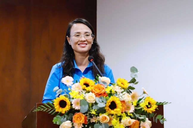 | Bà Lê Thị Sương Mai - Ủy viên Ban Chấp hành Tổng LĐLĐ Việt Nam, Thành ủy viên, Phó Chủ tịch Ủy ban MTTQ Việt Nam thành phố, Chủ tịch LĐLĐ TP Cần Thơ - phát biểu. Ảnh: Mỹ Ly |