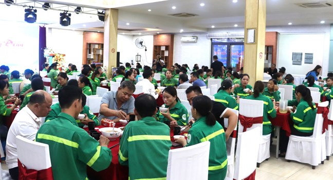 “Bữa cơm Công đoàn” được chuẩn bị với 180 suất cơm (trị giá 70.000 đồng/suất), bảo đảm đủ dinh dưỡng, an toàn vệ sinh, thể hiện tinh thần đoàn kết, trách nhiệm xã hội của tổ chức Công đoàn trong việc đồng hành cùng doanh nghiệp, chăm lo thiết thực cho công nhân lao động, đặc biệt là những người đang trực tiếp làm việc ở tuyến đầu giữ gìn môi trường trong điều kiện mưa gió, môi trường ẩm ướt, độc hại để đảm bảo đời sống dân sinh sau bão.