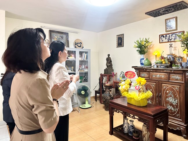 Chủ tịch Hội LHPN Việt Nam Lê Thị Thủy và các thành viên đoàn công tác dâng hương tưởng nhớ cố Chủ tịch Hội LHPN Việt Nam Lê Thị Xuyến