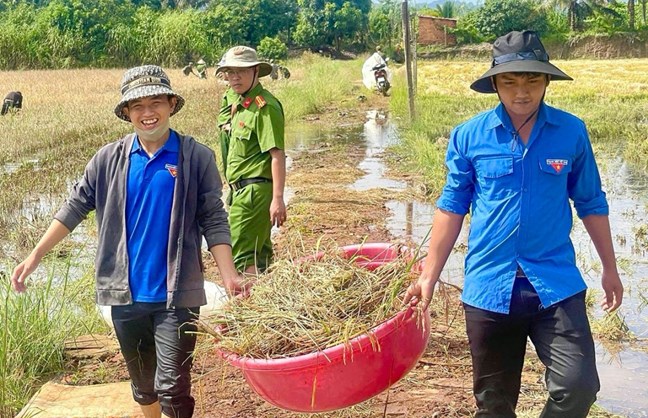 Trên cánh đồng ngập úng, hình ảnh những chiếc áo xanh tình nguyện lội ruộng, gặt lúa, vượt qua dòng nước sâu để vận chuyển lúa về nhà đã để lại nhiều xúc động cho bà con. Dù trời vẫn mưa lất phất, bùn lầy trơn trượt, nhưng các đoàn viên, thanh niên không ngơi tay, vừa gặt, vừa khuân vác, ai nấy đều nỗ lực hết mình với mong muốn giảm thiệt hại cho người dân nơi đây.