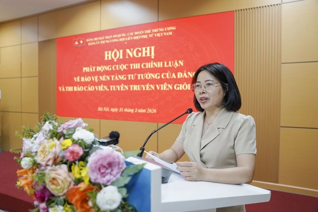 | Bà Nguyễn Thị Kim Oanh, Phó Bí thư Đảng ủy Trung ương Hội LHPN Việt Nam, phát biểu phát động Cuộc thi chính luận về bảo vệ nền tảng tư tưởng của Đảng lần thứ Hai, năm 2026 và thi báo cáo viên, tuyên truyền viên giỏi toàn quốc năm 2026 |