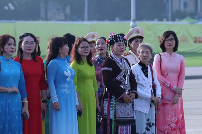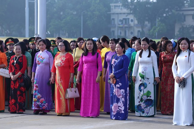 | Bà Nguyễn Thị Tuyến (bên phải), Ủy viên TƯ Đảng, Phó Chủ tịch UBTƯ MTTQ Việt Nam, Chủ tịch Hội LHPN Việt Nam và bà Trương Mỹ Hoa, nguyên Bí thư Trung ương Đảng, nguyên Phó Chủ tịch nước, nguyên Chủ tịch Hội LHPN Việt Nam (thứ 2 từ phải sang) dẫn đầu đoàn đại biểu Hội LHPN Việt Nam viếng Lăng Chủ tịch Hồ Chí Minh. |