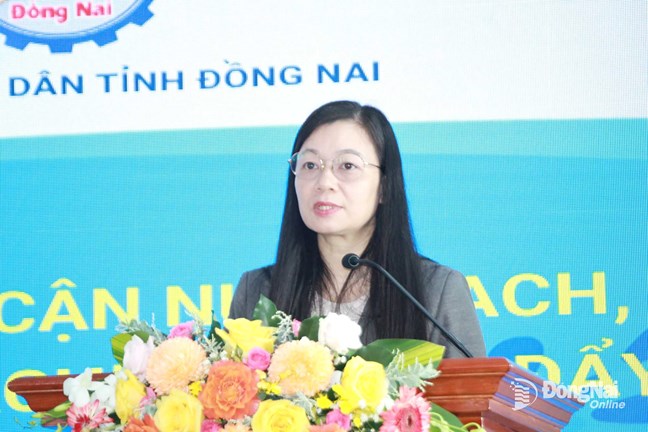 | Tỉnh ủy viên, Phó Chủ tịch UBND tỉnh Đồng Nai Nguyễn Thị Hoàng phát biểu tại hội thảo. Ảnh: Nga Sơn |
