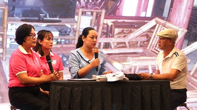 Bà Trần Thị Thoa, thành viên đội thi Hội LHPN phường Tân Hải, chia sẻ: "Đội chúng tôi chọn hình thức thuyết trình kết hợp pano tuyên truyền. Các tuyên truyền viên đã mang đến chương trình thông điệp về việc thay đổi tư duy, nếp nghĩ, cách làm để xây dựng gia đình '5 không, 3 sạch', '5 có, 3 sạch', vun đắp giá trị gia đình Việt, góp phần xây dựng nông thôn mới. Chúng tôi mong rằng bài thuyết trình của mình sẽ mở ra một góc nhìn mới mẻ, thiết thực và thật sự bổ ích cho mọi người."