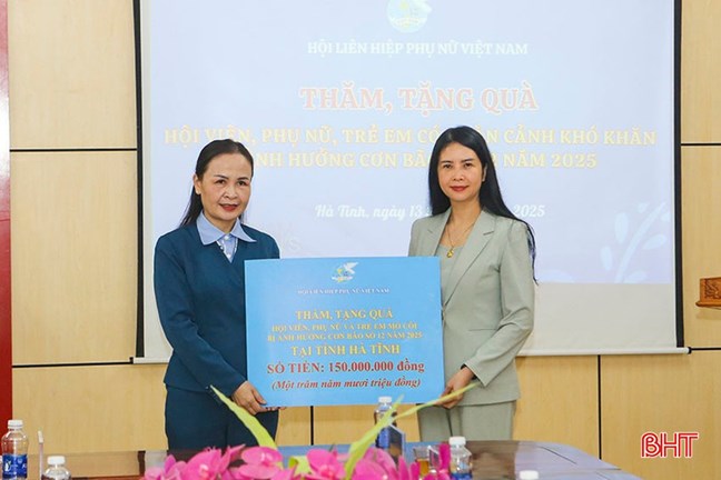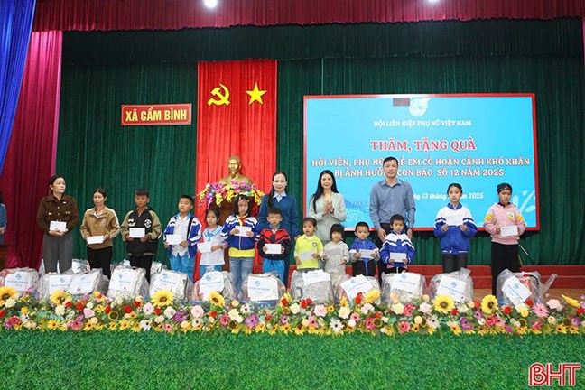 (Mặt trận) - Sáng 13/11, đoàn công tác Trung ương Hội LHPN Việt Nam do bà Trần Lan Phương - Phó Chủ tịch Thường trực Hội đã đến thăm, tặng quà cho các hội viên phụ nữ và trẻ em khó khăn bị ảnh hưởng bởi thiên tai, tại các xã Cẩm Bình và Cẩm Duệ. Những suất quà trao cho các hội viên phụ nữ và trẻ em khó khăn Hà Tĩnh bị ảnh hưởng bởi thiên tai nhằm góp phần giúp các gia đình có thêm động lực, sớm ổn định cuộc sống.
