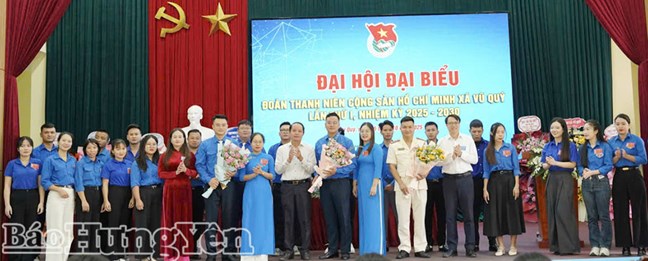 Lãnh đạo Tỉnh đoàn, lãnh đạo xã Vũ Quý tặng hoa chúc mừng Ban Chấp hành Đoàn TNCS Hồ Chí Minh xã Vũ Quý, nhiệm kỳ 2025 - 2030