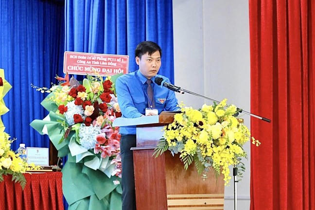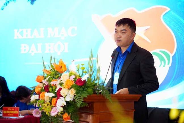 | Đồng chí Trần Việt Anh, Phó Bí thư Tỉnh đoàn, Chủ nhiệm UBKT Tỉnh đoàn Lâm Đồng phát biểu tại Đại hội |