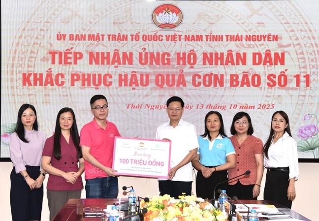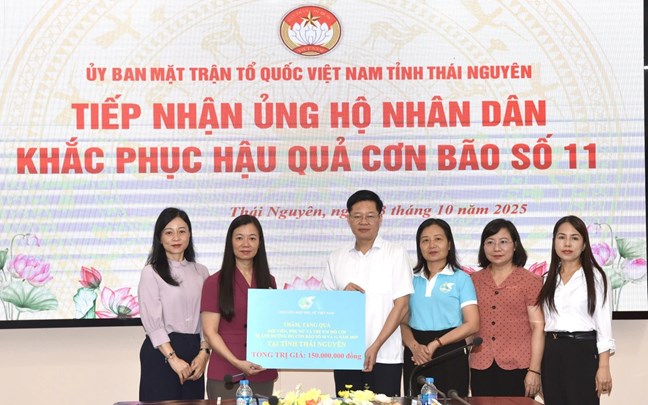 (Mặt trận) - Ngày 13/10, đoàn công tác của Trung ương Hội LHPN Việt Nam do bà Nguyễn Thị Thu Hiền, Phó Chủ tịch Hội LHPN Việt Nam, làm trưởng đoàn, phối hợp cùng Quỹ "Vì Tầm Vóc Việt" và Tập đoàn TH đã đến thăm và tặng quà cho nhân dân vùng lũ tại tỉnh Thái Nguyên.