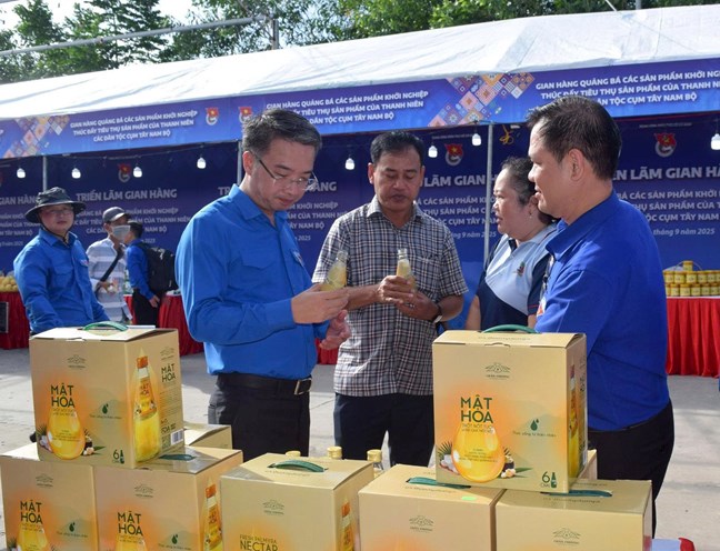 Điểm nhấn của hội chợ là 50 gian hàng trưng bày nông sản, sản phẩm OCOP, thủ công mỹ nghệ, đặc sản địa phương và các sản phẩm ứng dụng công nghệ số của thanh niên các tỉnh Tây Nam Bộ. Không gian này không chỉ kết nối tiêu thụ sản phẩm, mở rộng thị trường mà còn giúp các hợp tác xã, doanh nghiệp, hộ gia đình thanh niên giao lưu, giới thiệu bản sắc văn hóa vùng miền tới đông đảo người dân, du khách.