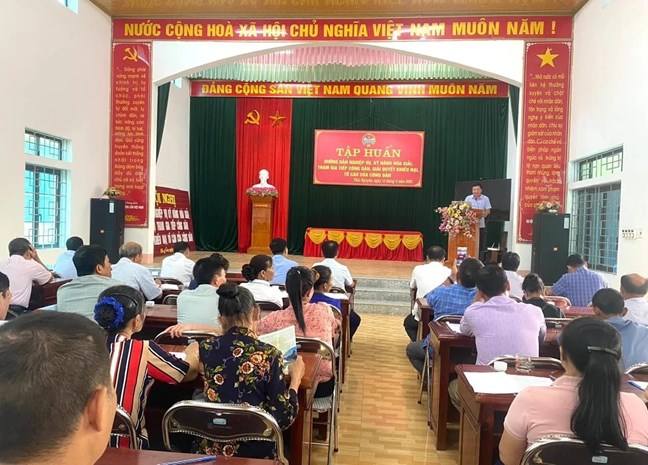 | Hội Nông dân tỉnh Thái Nguyên tập huấn, hướng dẫn nghiệp vụ, kỹ năng hoà giải, giải quyết khiếu nại, tố cáo cho hội viên, nông dân phường Tân Hương (nay là phường Vạn Xuân, tỉnh Thái Nguyên). Ảnh: HND phường Tân Hương |