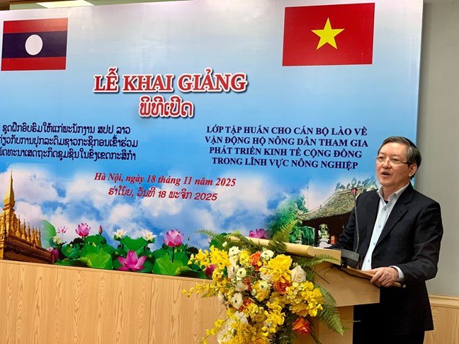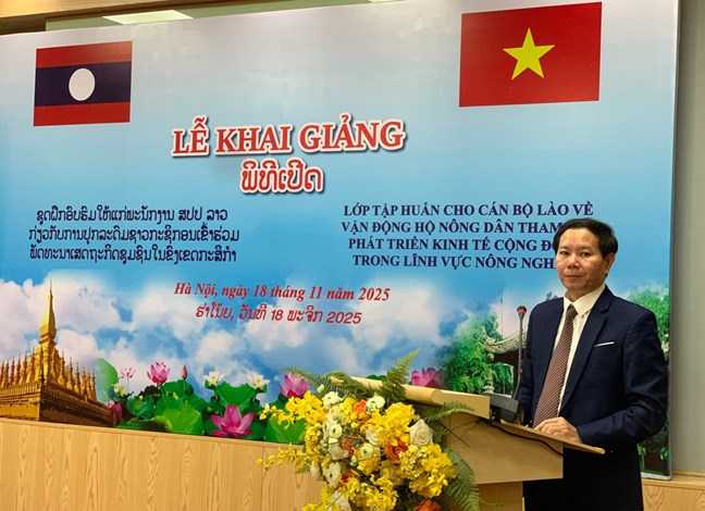 Phát biểu khai giảng lớp học, TS. Nguyễn Khắc Toàn – Viện trưởng Viện Đào tạo, bồi dưỡng cán bộ và Nghiên cứu khoa học cho biết: Lớp tập huấn này là kết quả Thực hiện Biên bản ghi nhớ trong chuyến công tác của Chủ tịch Trung ương Hội Nông dân Việt Nam tại Cộng hòa Dân chủ Nhân dân Lào theo lời mời của Chủ tịch Ủy ban Trung ương Mặt trận Lào xây dựng đất nước tháng 3/2024.