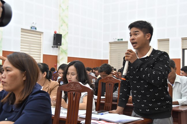 Cử tri Rơ Ô Phước trình bày nguyện vọng tại buổi tiếp xúc cử tri ở xã Phú Túc. Ảnh: Nữ Vương
