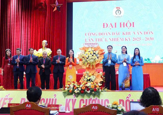 | Thường trực LĐLĐ tỉnh tặng hoa chúc mừng Đại hội Công đoàn đặc khu Vân Đồn lần thứ I |