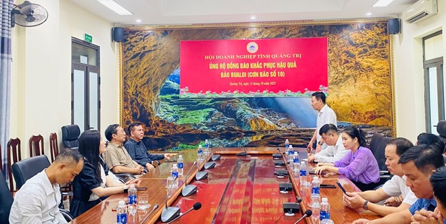 Nhằm chia sẻ những khó khăn, mất mát đối với bà con Nhân dân chịu ảnh hưởng trực tiếp của Bão số 10 (Bualoi) trên địa bàn tỉnh Quảng Trị. Hội Doanh nghiệp tỉnh đã trao biển hỗ trợ 216 triệu đồng cho Ủy ban MTTQ Việt Nam tỉnh nhằm thông qua kênh Mặt trận Tổ quốc để chuyển trực tiếp hỗ trợ đến những người dân tại các địa phương bị ảnh hưởng giúp bà con ổn định, sớm khắc phục hậu quả sau bão.