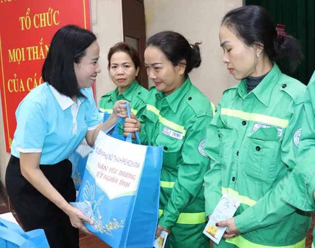 Dịp này, Hội LHPN TPHCM đã trao 500 phần quà tết chăm lo nữ công nhân khó khăn đang làm việc tại các đơn vị dịch vụ công ích, hợp tác xã môi trường tại TPHCM. Mỗi phần quà gồm hiện kim và hiện vật trị giá hơn 1,2 triệu đồng.
