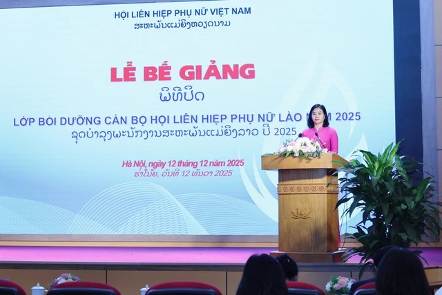 (Mặt trận) - Sáng 12/12, Trung ương Hội LHPN Việt Nam tổ chức lễ Bế giảng lớp bồi dưỡng cán bộ Hội LHPN Lào năm 2025 sau 2 tháng học tập tại Việt Nam. Bà Nguyễn Thị Tuyến, Ủy viên TƯ Đảng, Phó Chủ tịch UBTƯ MTTQ Việt Nam, Chủ tịch Hội LHPN Việt Nam tham dự buổi lễ.