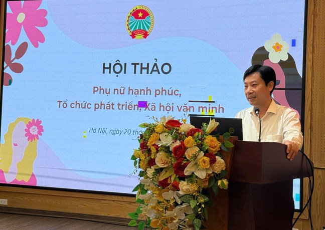 Tại buổi hội thảo, Phó Chủ tịch Ban Chấp hành Trung ương Hội Nông dân Việt Nam Nguyễn Xuân Định đã đại diện cho phái nam của Trung ương Hội Nông dân Việt Nam trao tặng bó hoa tươi thắm và gửi lời chúc mừng đến đại diện chị em phụ nữ Trung ương Hội Nông dân Việt Nam.