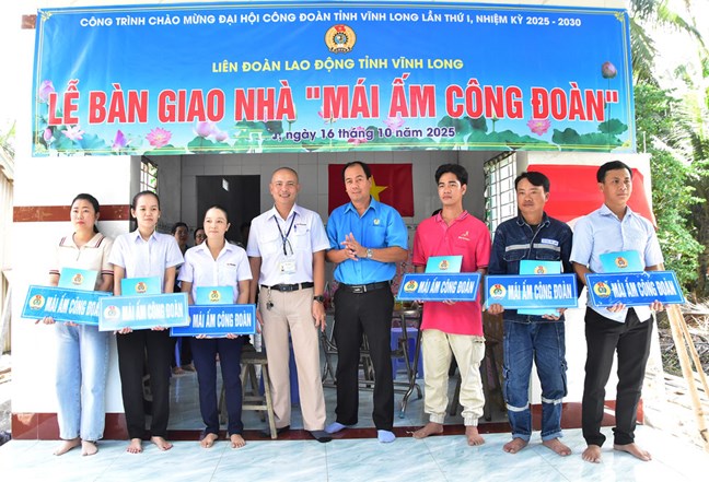 (Mặt trận) - Sáng 16/10, tại xã An Trường, Liên đoàn Lao động tỉnh Vĩnh Long phối hợp với các công đoàn cơ sở (CĐCS) tổ chức lễ bàn giao nhà “Mái ấm Công đoàn” cho 6 đoàn viên, người lao động có hoàn cảnh khó khăn về nhà ở.